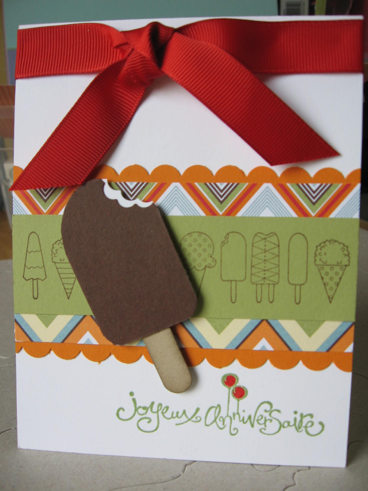 Avec un morceau de carton PÉPITE DE CHOCOLAT et un blanc pour la crème glacée à l'intérieur de 1po1/4 par 4po vous faites 2 friandises glacées.